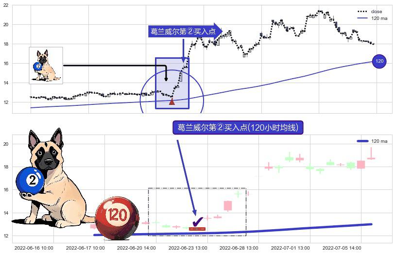 ⚀ 2022-06-22 14:00:00-小时显现 葛兰威尔均线 120小时均线 第②买入点 上升趋势的中继信号,后市看涨,买进信号