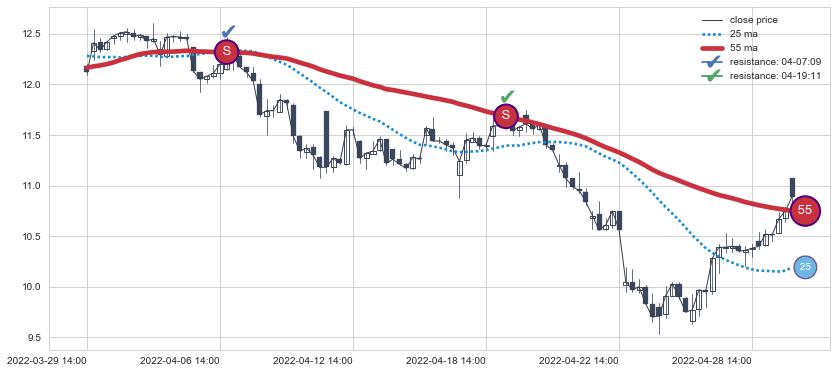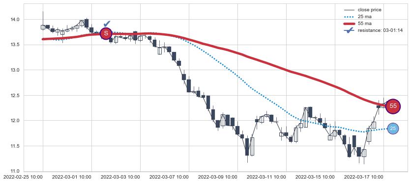 ⚂ 2022-06-17 13:00:00小时突然冒出一根大阳线,一下子顶穿三条均线且收盘价收在各条均线之上