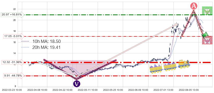 ♘ 阻力价格位20.97,可信任强度63.19%,距离最后交易2022-08-12 14:00形成的收盘价格17.95相差 +16.81%