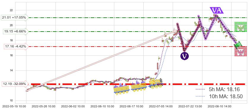 ♘ 阻力价格位19.15,可信任强度52.51%,距离最后交易2022-08-12 14:00形成的收盘价格17.95相差 +6.66%