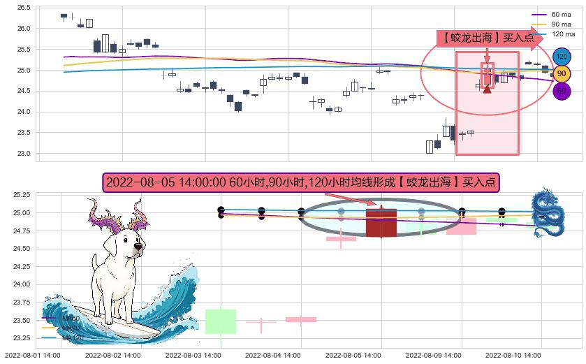 ⚀ 2022-08-05 14:00:00小时显现 60小时-90小时-120小时均线 【蛟龙出海】买入点 看多信号,后市看涨,买入