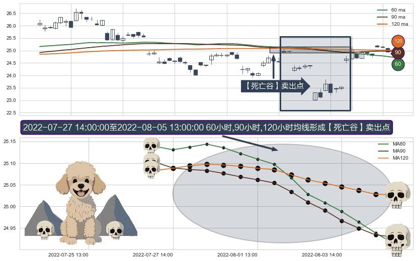 ⚂ 【死亡谷】卖出点 由MA60均线下穿MA90均线和MA120均线,MA90均线下穿MA120均线形成