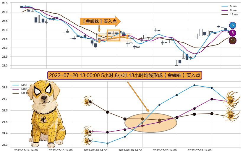 ⚀ 2022-07-20 13:00:00小时显现 5小时-8小时-13小时均线 【金蜘蛛】买入点 看多信号,后市看涨,买入