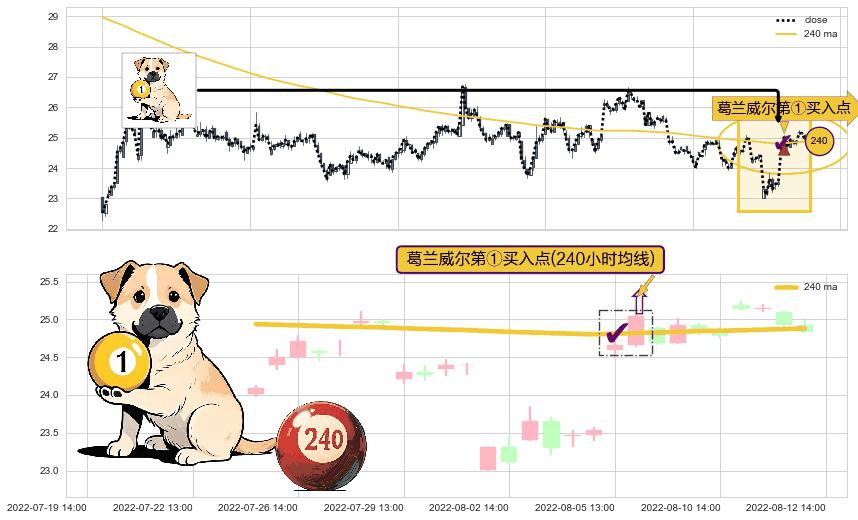 ⚀ 2022-08-05 14:00:00-小时显现 葛兰威尔均线 240小时均线 第买①入点 走势反转见底信号,后市看涨,买进信号