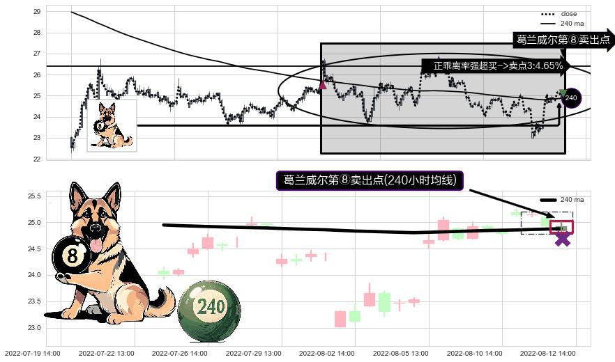 ⚀ 2022-08-12 14:00:00-小时显现 葛兰威尔均线 240小时均线 第⑧卖出点 下降趋势的中继信号,后市看跌,卖出信号