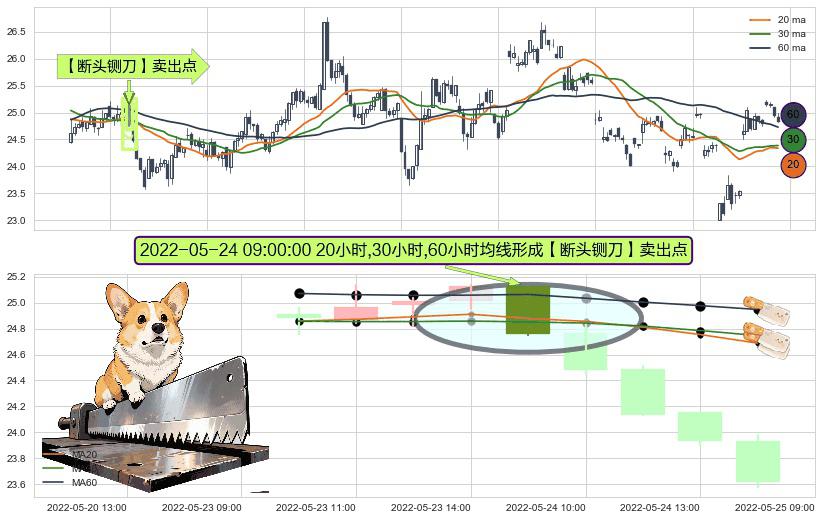 ⚀ 2022-05-24 09:00:00小时显现 20小时-30小时-60小时均线 【断头铡刀】卖出点 看空信号,后市看跌,卖出