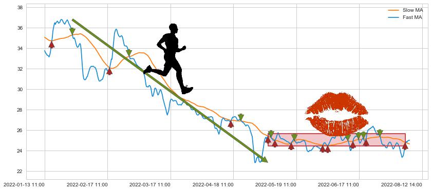 01-26 10:00至05-06 11:00 慢线与快线呈空头排列, 慢线与快线接触少,无缠绕