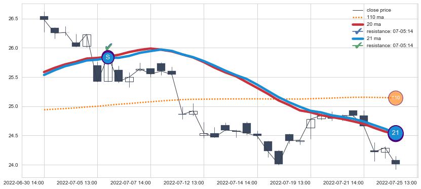 ⚂ 2022-08-05 14:00:00小时突然冒出一根大阳线,一下子顶穿三条均线且收盘价收在各条均线之上