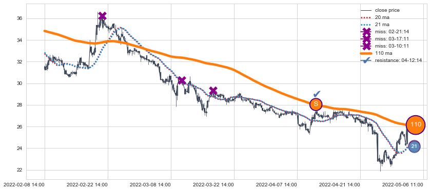 ⚂ 2022-06-08 09:00:00-小时均线向上突破,2022-08-12 14:00:00-小时重新下穿均线破位,均线阻力再次生效
