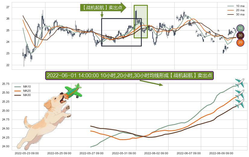 ⚀ 2022-05-26 10:00:00小时-2022-06-09 10:00:00小时显现 10小时-20小时-30小时均线 【战机起航】卖出点 看空信号,后市看跌,卖出