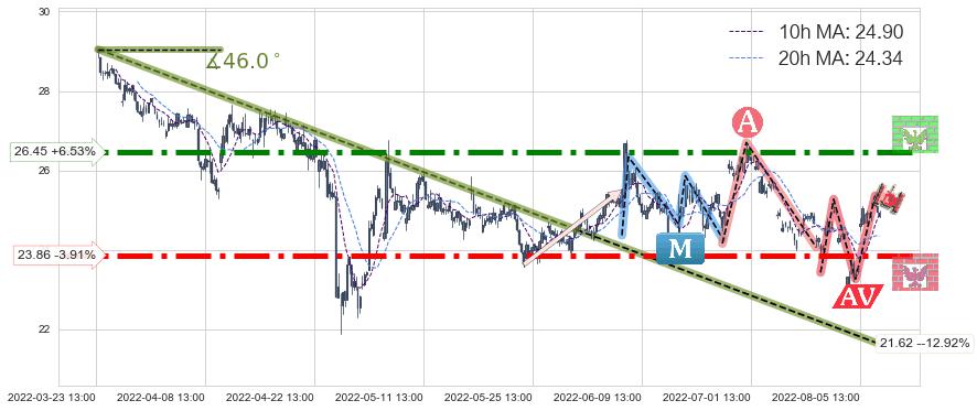 ♘ 阻力价格位26.45,可信任强度91.46%,距离最后交易2022-08-12 14:00形成的收盘价格24.83相差 +6.53%
