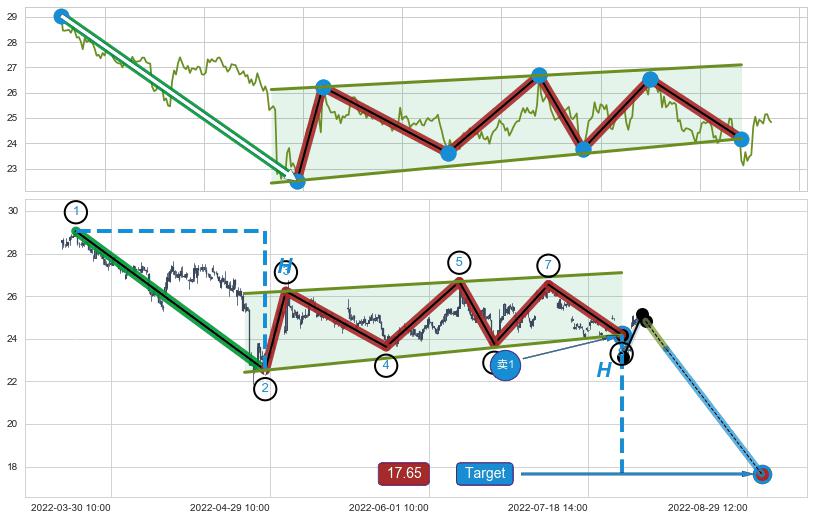 ➣ 最小中继整理跌幅→𝐇: 6.53 (𝐇旗杆的长度:旗杆起点→顶点)