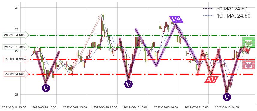 ♘ 阻力价格位25.17,可信任强度55.36%,距离最后交易2022-08-12 14:00形成的收盘价格24.83相差 +1.38%