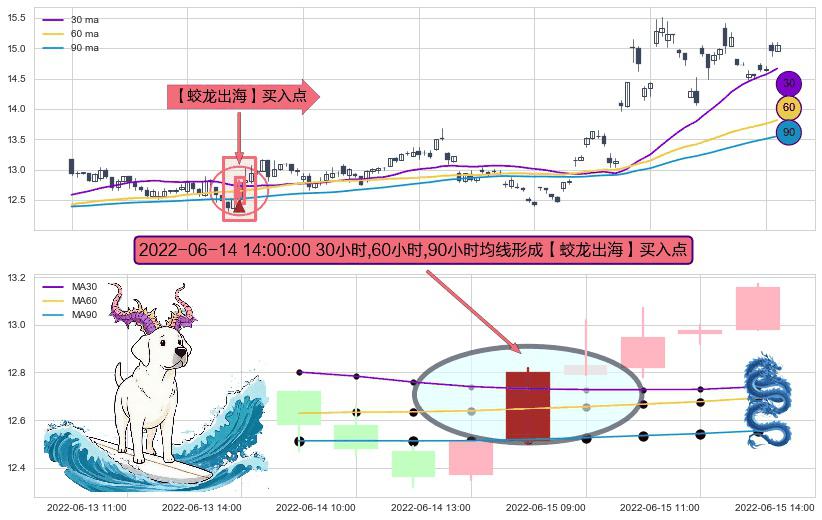 ⚀ 2022-06-14 14:00:00小时显现 30小时-60小时-90小时均线 【蛟龙出海】买入点 看多信号,后市看涨,买入