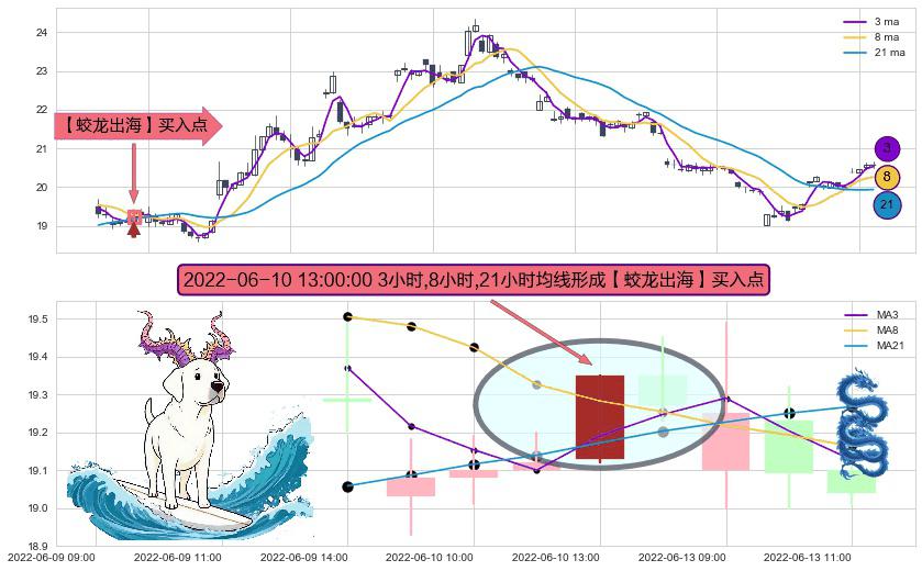 ⚀ 2022-06-10 13:00:00小时显现 3小时-8小时-21小时均线 【蛟龙出海】买入点 看多信号,后市看涨,买入