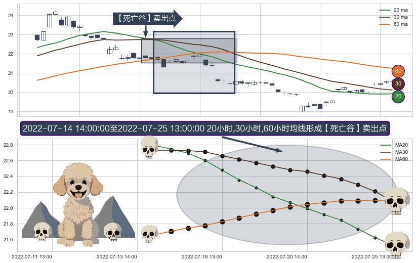 ⚀ 2022-07-15 13:00:00-小时至2022-07-25 13:00:00-小时显现 20小时-30小时-60小时均线 【死亡谷】卖出点 看空信号,后市看跌,卖出