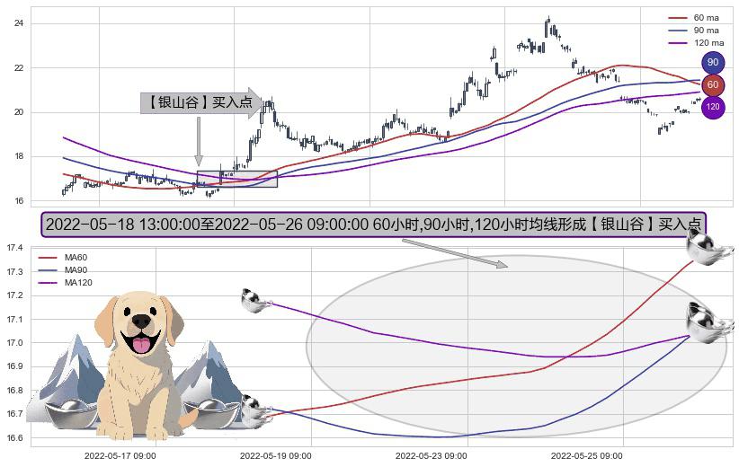 ⚀ 2022-05-18 14:00:00-小时至2022-05-26 09:00:00-小时显现 60小时-90小时-120小时均线 【银山谷】买入点 看多信号,后市看涨,买入