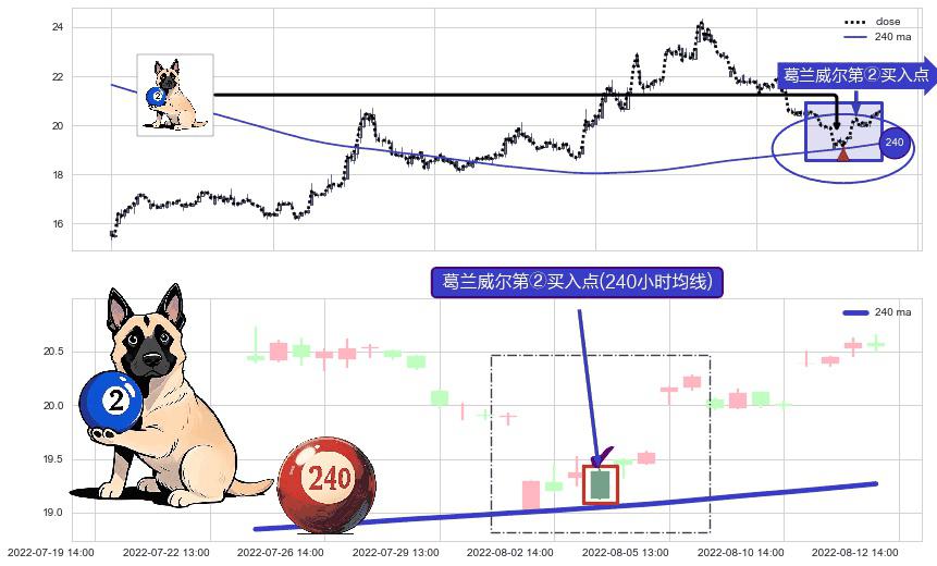 ⚀ 2022-08-03 14:00:00-小时显现 葛兰威尔均线 240小时均线 第②买入点 上升趋势的中继信号,后市看涨,买进信号