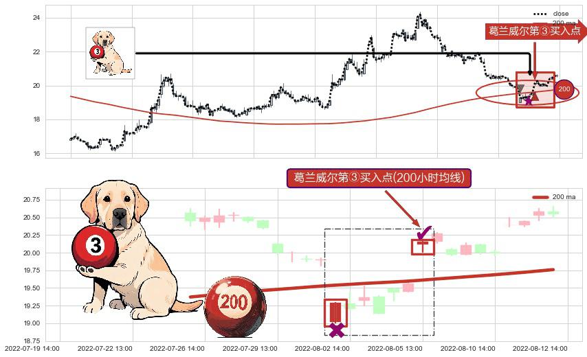 ⚀ 2022-08-05 13:00:00-小时显现 葛兰威尔均线 200小时均线 第③买入点 上升趋势的中继信号,后市看涨,买进信号