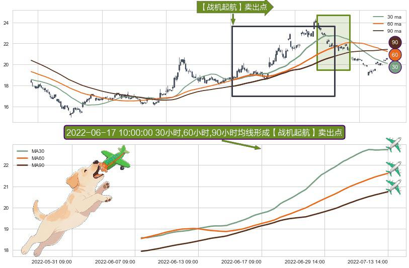 ⚀ 2022-06-07 11:00:00小时-2022-07-13 14:00:00小时显现 30小时-60小时-90小时均线 【战机起航】卖出点 看空信号,后市看跌,卖出