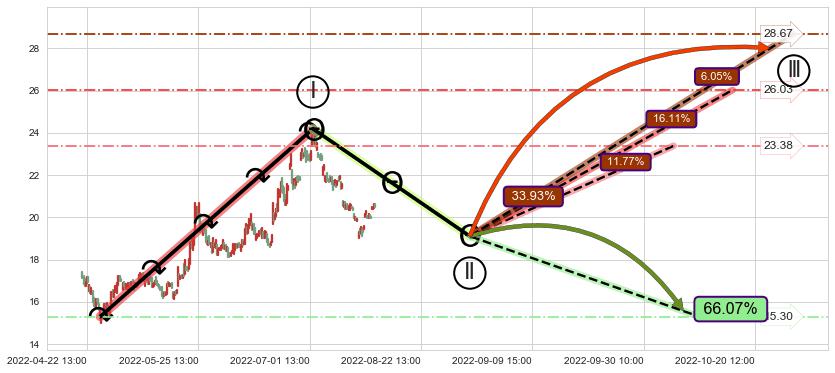 ➢ 循环浪继续向上【最低】位置(10-06:09, 23.38),匹配聚类样本比例34.70%, 可能性概率11.77%