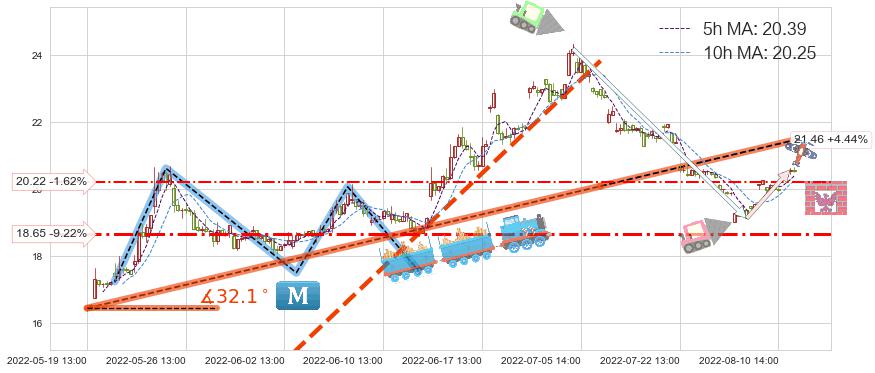 ♞ 5小时均线:20.39,10小时均线:20.25→ 快线>慢线