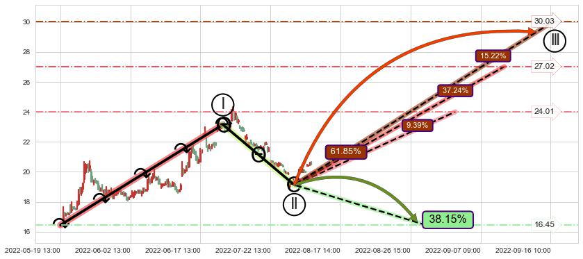 ➢ 循环浪继续向上【最高】位置(09-16:12, 30.03),匹配聚类样本比例24.61%, 可能性概率15.22%