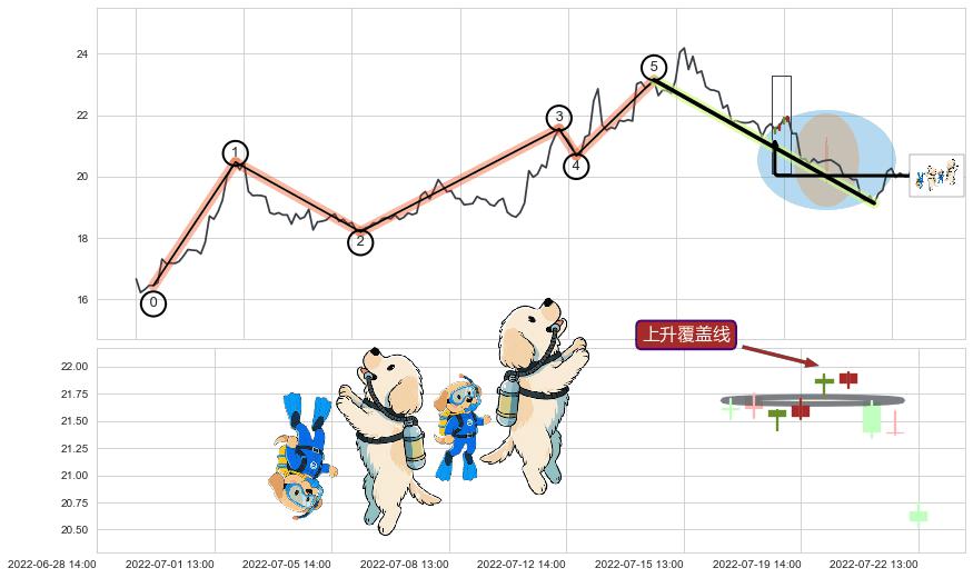 ➣ 2022-05-19 13:00-2022-07-08 13:00上升趋势存在反转[风险],其原上升趋势的支撑位(21.46)已破位[强阻力信号],原上升趋势角度: 32.1˚