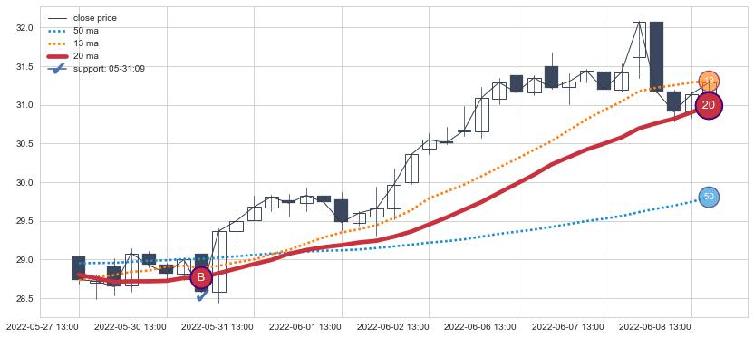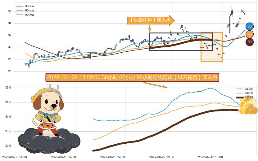 ⚀ 2022-06-14 10:00:00小时-2022-07-19 14:00:00小时显现 30小时-60小时-90小时均线 【烘云托月】买入点 看多信号,后市看涨,买入