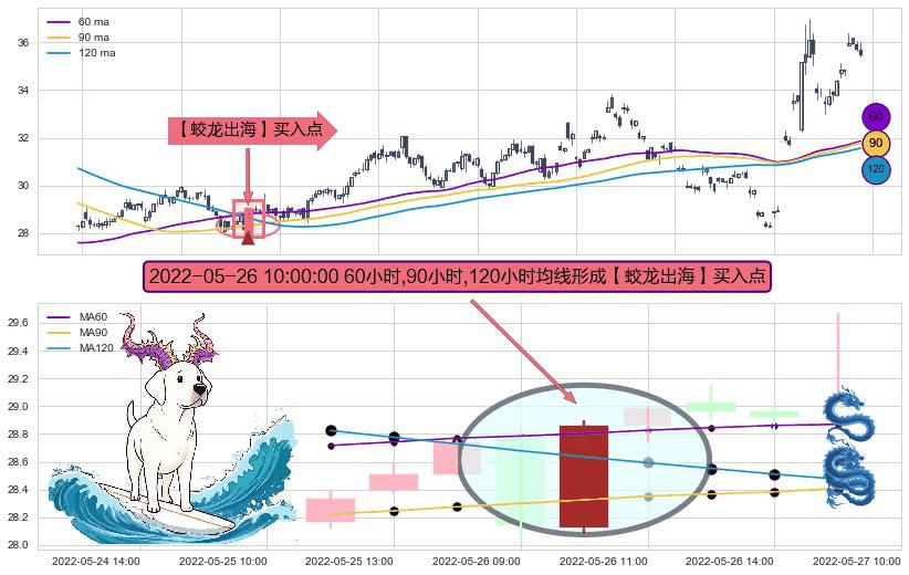 ⚀ 2022-05-26 10:00:00小时显现 60小时-90小时-120小时均线 【蛟龙出海】买入点 看多信号,后市看涨,买入