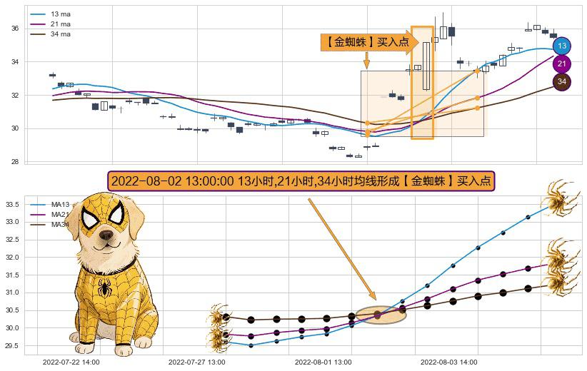 ⚀ 2022-08-02 13:00:00小时显现 13小时-21小时-34小时均线 【金蜘蛛】买入点 看多信号,后市看涨,买入