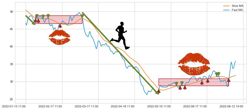 01-20 14:00至03-04 13:00 慢线与快线多次接触,存在上下穿越,有缠绕