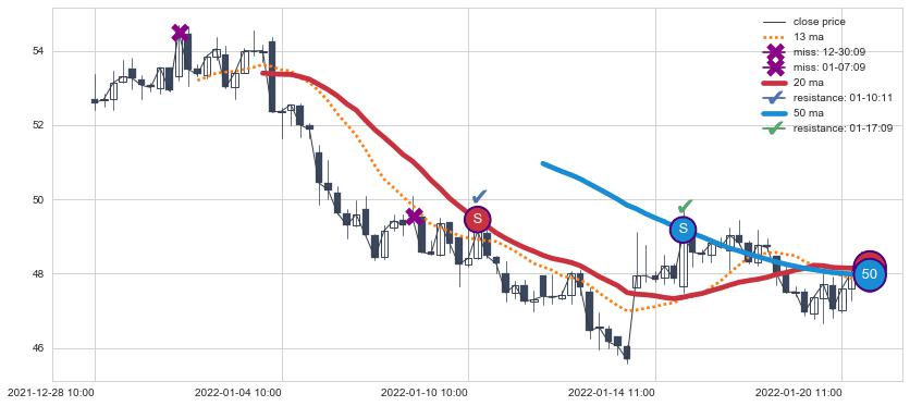 ⚄ 短期均线MA13上穿中期均线MA21形成的交叉是标准 黄金交叉