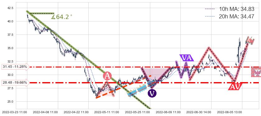 ♘ 支撑价格位31.45,可信任强度55.37%,距离最后交易2022-08-12 14:00形成的收盘价格35.45相差 -11.28%