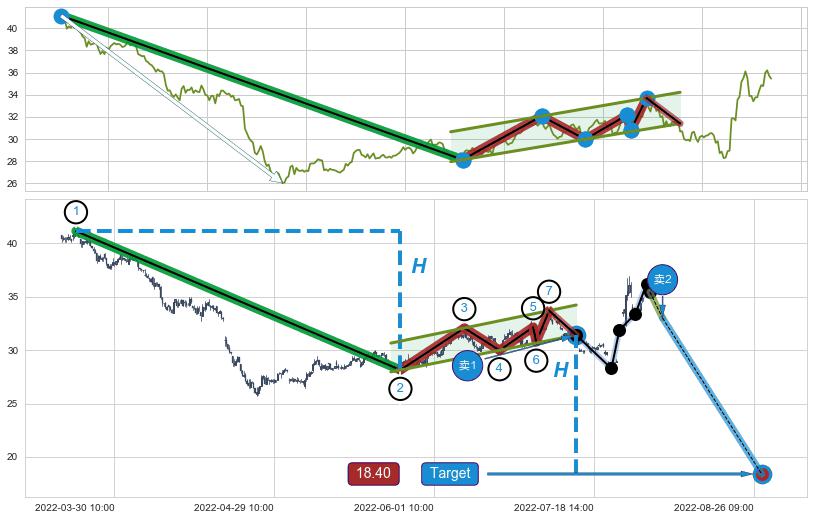➣ 最小中继整理跌幅→𝐇: 13.00 (𝐇旗杆的长度:旗杆起点→顶点)