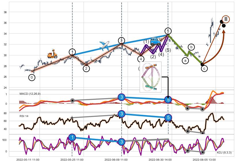 ➢ a,c调整浪MACD, RSI, KDJ走势都【未出现】背离,abc走势延续, 5浪反转概率增强