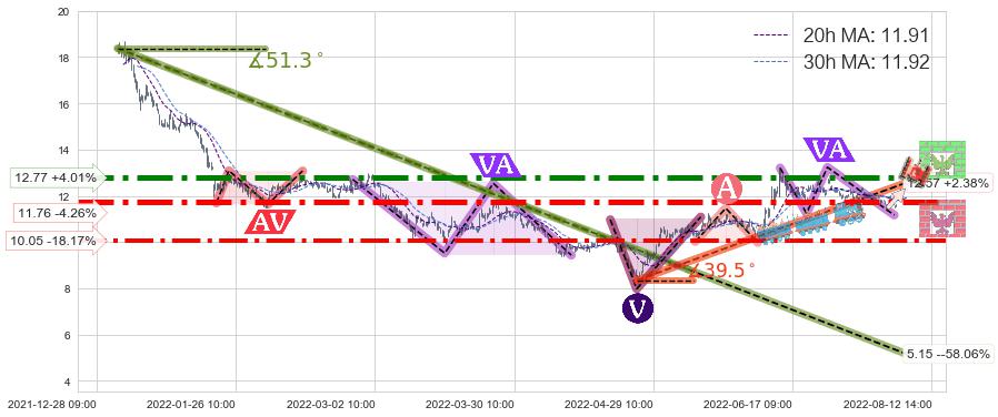 ♘ 阻力价格位12.77,可信任强度89.18%,距离最后交易2022-08-12 14:00形成的收盘价格12.28相差 +4.01%