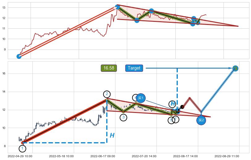 ➢ 最小中继整理涨幅→𝐇: 4.72 (𝐇楔型旗杆的长度:楔型起点→顶点)