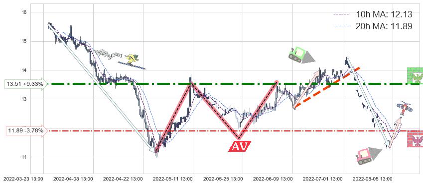 ♘ 阻力价格位13.51,可信任强度70.81%,距离最后交易2022-08-12 14:00形成的收盘价格12.36相差 +9.33%