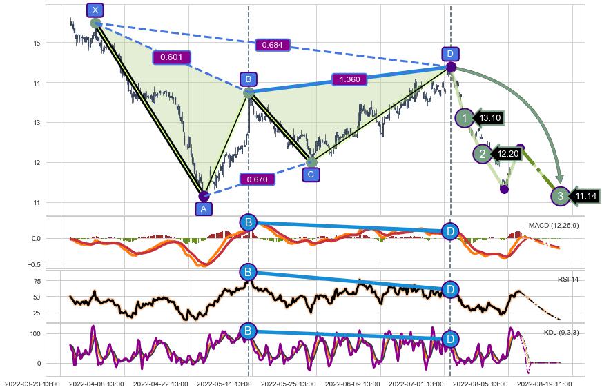 ➢ 谐波价格D点比B点高 ⤴,【KDJ】指标D点比B点低 ⤵️