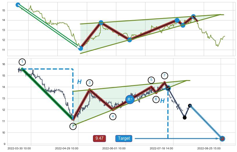 ➢ 【卖1】: 激进型 卖点→(07-11:13: 13.91 )形成突破升🚩楔型【整理】形态