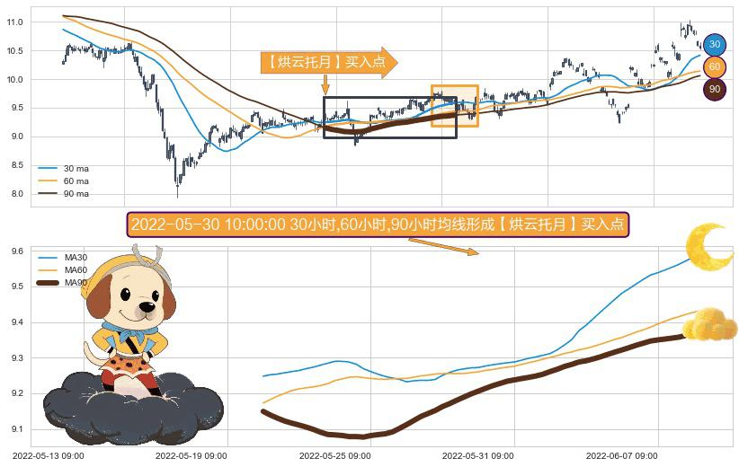 ⚀ 2022-05-20 09:00:00小时-2022-06-08 10:00:00小时显现 30小时-60小时-90小时均线 【烘云托月】买入点 看多信号,后市看涨,买入