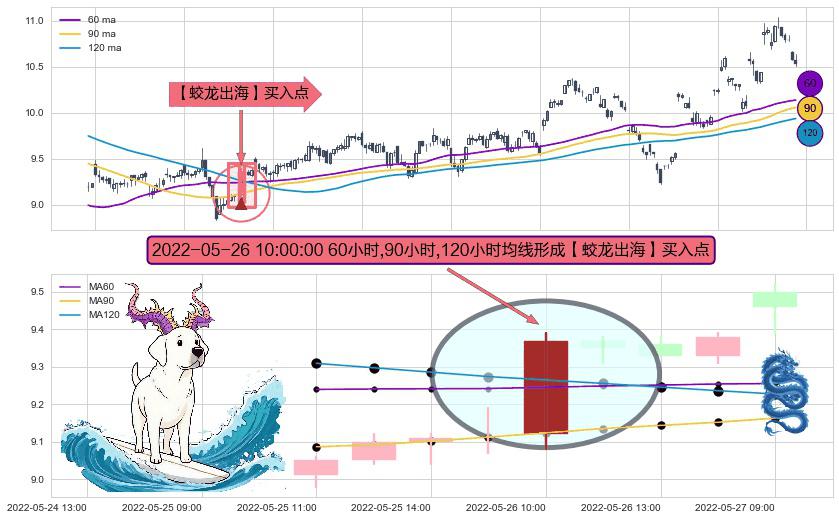 ⚀ 2022-05-26 10:00:00小时显现 60小时-90小时-120小时均线 【蛟龙出海】买入点 看多信号,后市看涨,买入