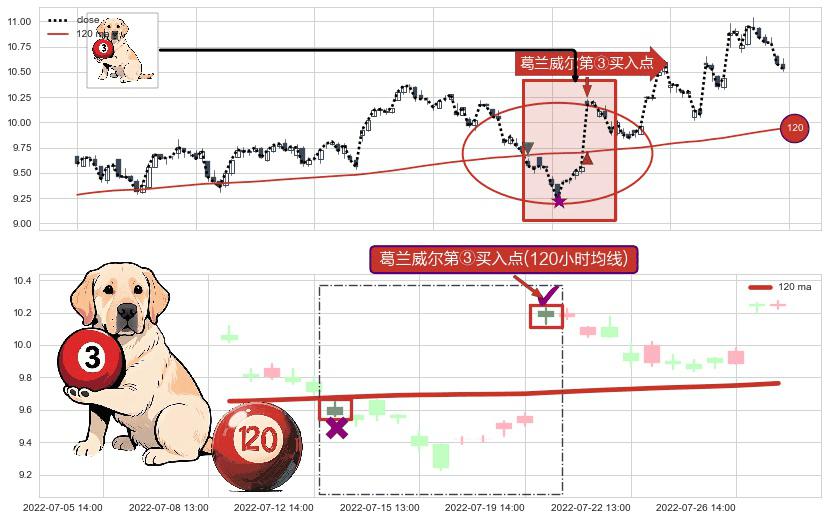 ⚀ 2022-07-20 13:00:00-小时显现 葛兰威尔均线 120小时均线 第③买入点 上升趋势的中继信号,后市看涨,买进信号