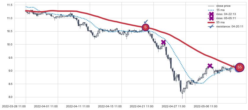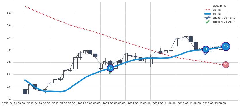 ⚂ 2022-07-13 13:00:00-小时均线向下破位,2022-07-20 13:00:00-小时重新上穿突破均线,均线支撑再次生效