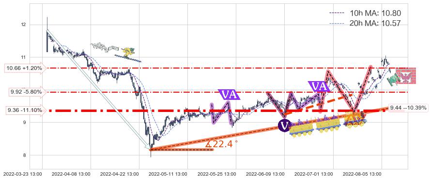 ♞ 10小时均线:10.80,20小时均线:10.57→ 快线>慢线