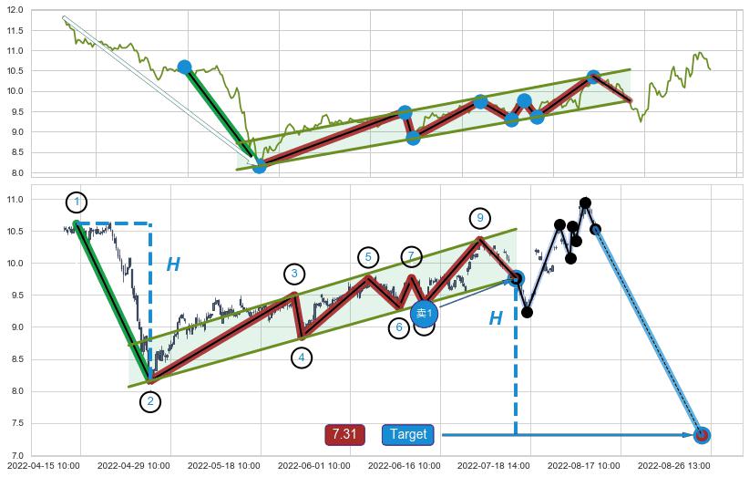 ➣ 最小中继整理跌幅→𝐇: 2.450 (𝐇旗杆的长度:旗杆起点→顶点)