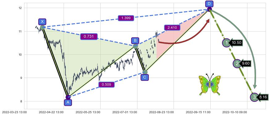 ➣ 未完成【蝴蝶】形态起点X: 04-07:09, 已到达C点: 07-15:14, 预测最终D点: 09-14:14, 共450交易小时