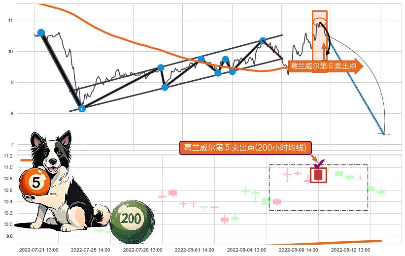 从2022-06-22 14:00至2022-07-28 14:00,共包含53个小时,阶段股价上涨10.90%,阶段股价变动位移路程比: 1 : 4