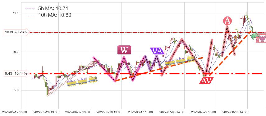 ♞ 5小时均线:10.71,10小时均线:10.80→ 快线<慢线